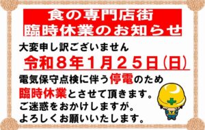 更新:2026.01.01食の専門店街 臨時休業のお知らせ!!