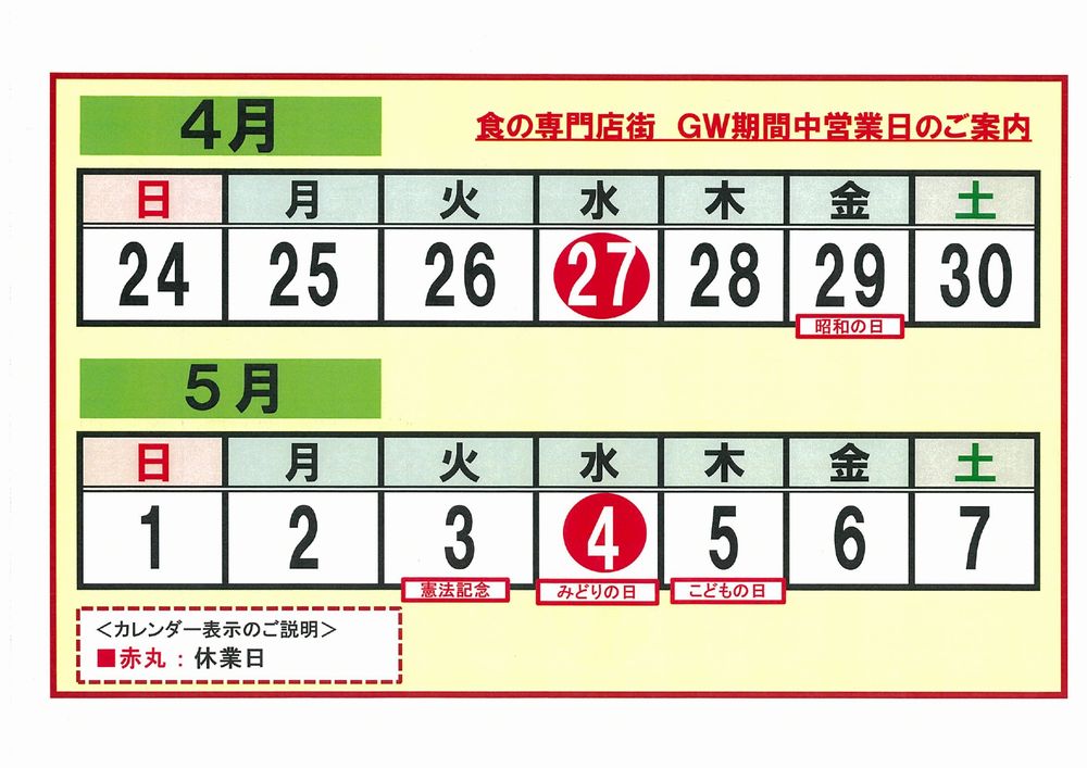 食の専門店街 ゴールデンウイーク 営業日のご案内!