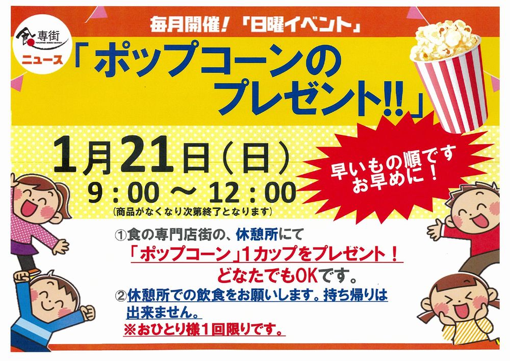 ポップコーンが無くなり次第終了になります。