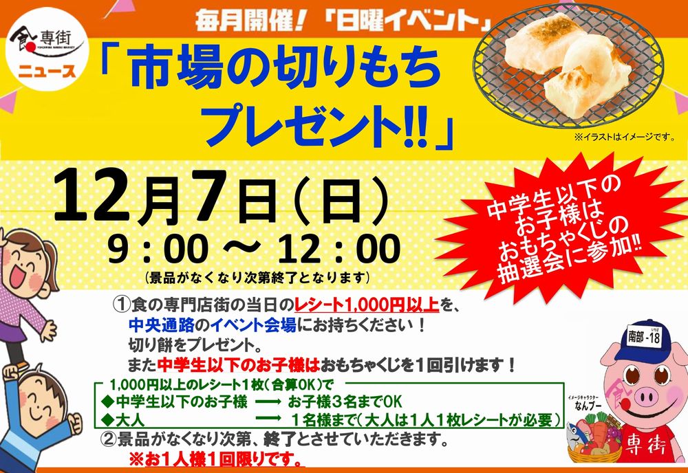当日の食の専門店街のレシート1,000円以上をイベント会場で提示 すると「切り餅」1袋プレゼント!!